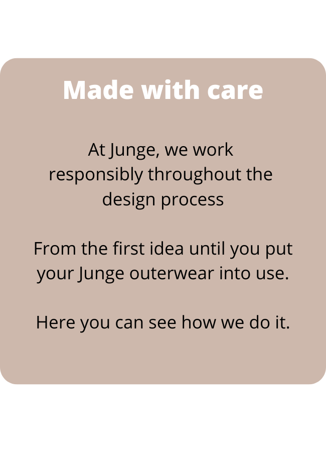 We focus on choosing materials, zippers, buttons, linings, down, etc., of good quality. This means that Junge's outerwear is durable and ages gracefully.