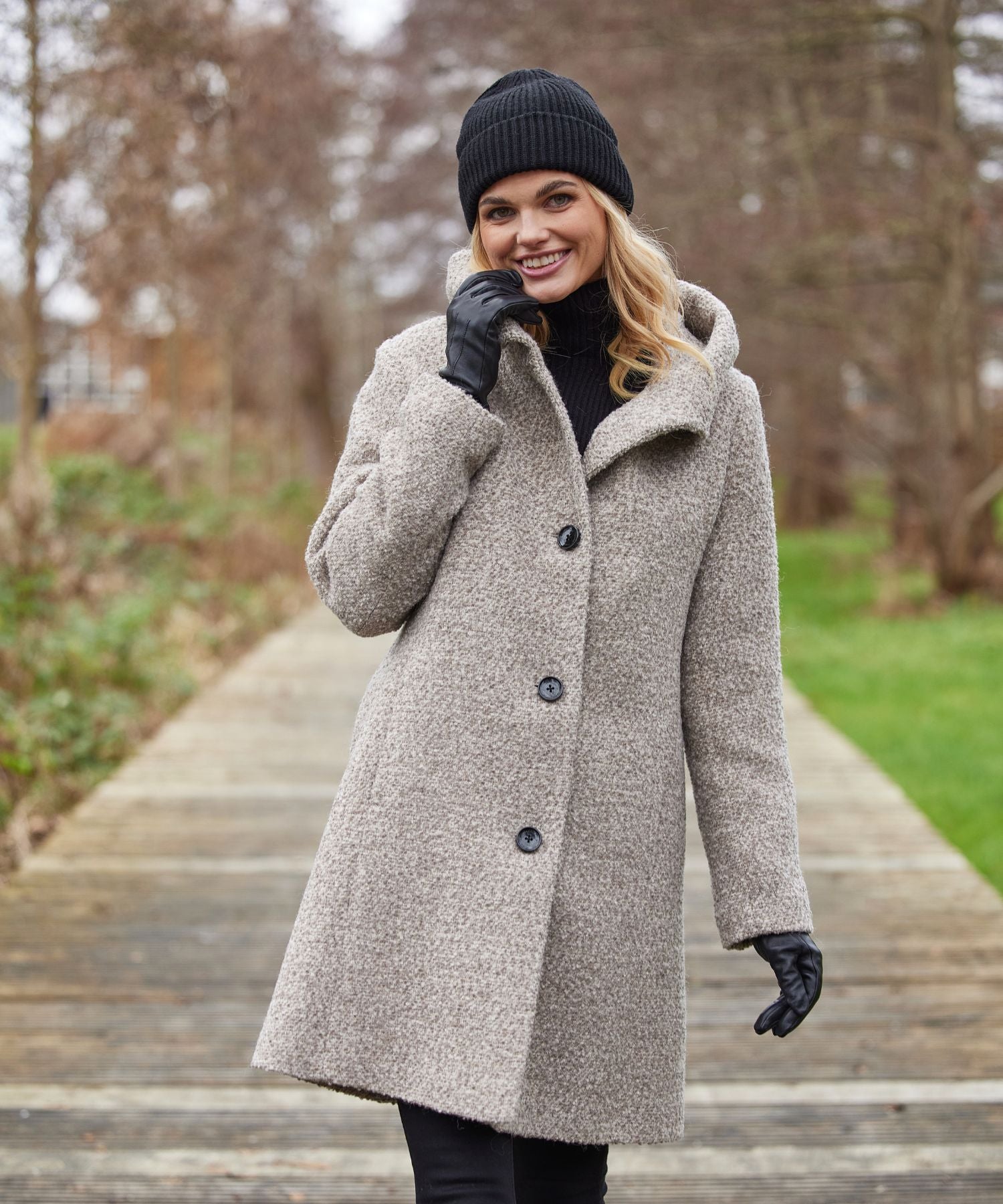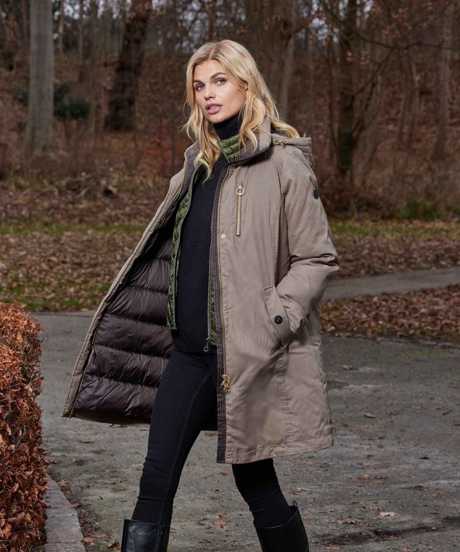 Miranda’s detachable hood is lined with a contrast color for a sporty edge, and the zip front with snap placket adds practical weather protection.