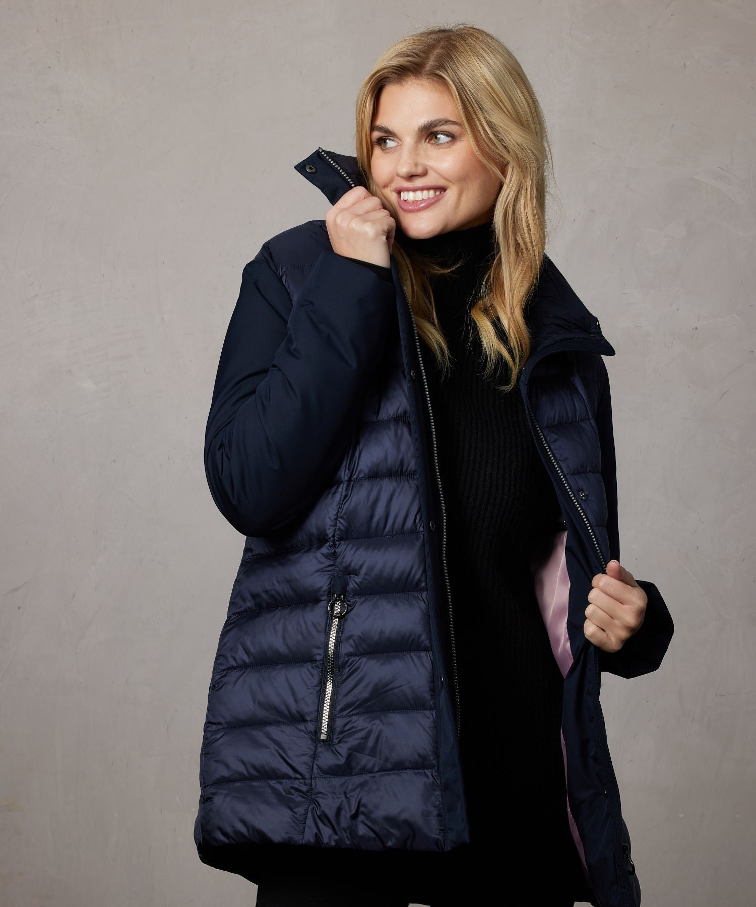 Stay stylish and warm through the colder months with Miranda – a sleek quilted jacket featuring bold contrast details and a clean, modern finish.